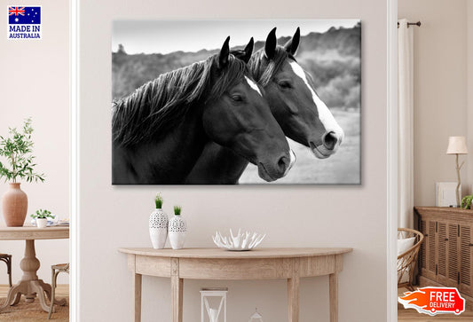 Two Horses in A Meadow B&W Wall Art Wall Art Decor 100% Australian Made