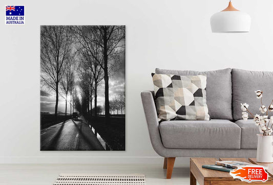 Trees Covered Road with Car B&W Photograph Print 100% Australian Made