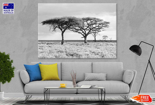 Trees on Grass Field B&W View Photograph Print 100% Australian Made