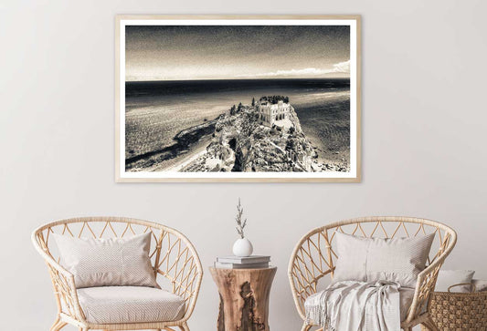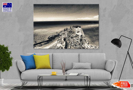 Tropea Coastline Aerial B&W View Photograph Print 100% Australian Made