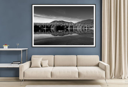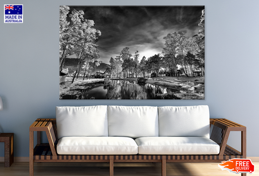 Trees & Lake Sky View B&W Photograph Print 100% Australian Made
