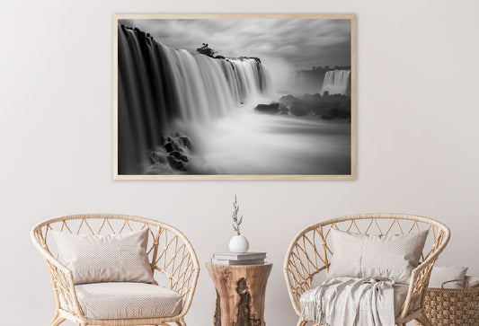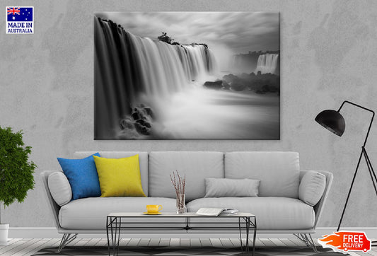Waterfall under Cloudy Sky B&W Photograph Print 100% Australian Made