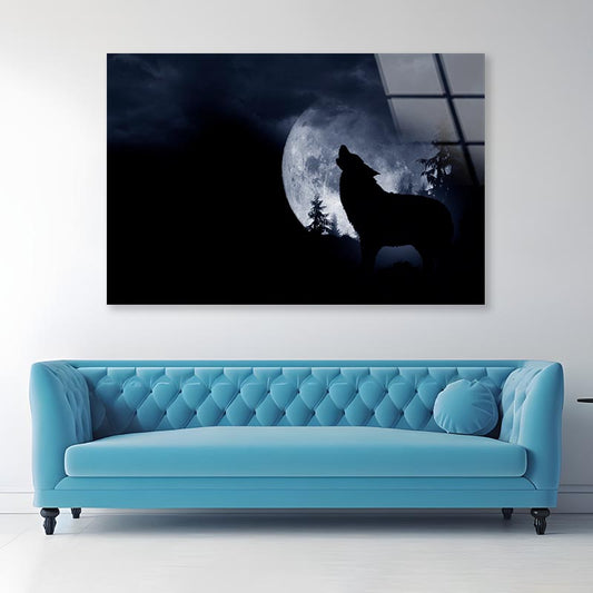 Wolf Howling at The Moon in The Dark Acrylic Glass Print Tempered Glass Wall Art 100% Made in Australia Ready to Hang