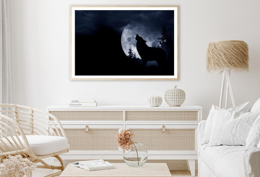 Wolf Howling at The Moon in The Dark Home Decor Premium Quality Poster Print Choose Your Sizes