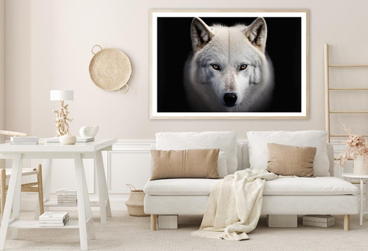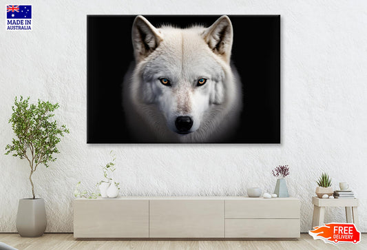 White Wolf with Blue Eyes Looking at The Camera Wall Art Decor 100% Australian Made