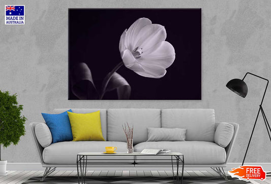 White Tulip on Dark B&W View Photograph Print 100% Australian Made