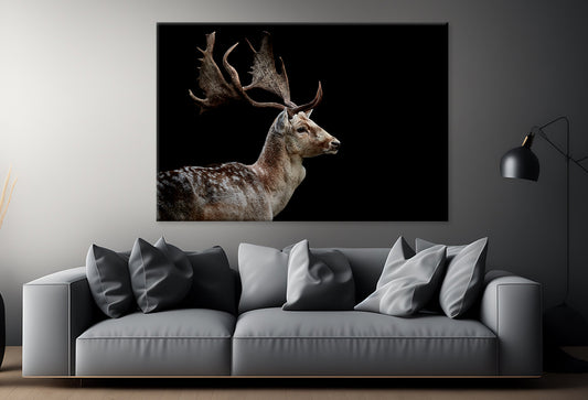 Male Fallow Deer on Black Background Wall Art Decor 100% Australian Made