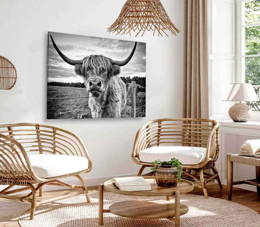 Bella Home Highland Cow B&W Photograph Print Canvas Ready to hang