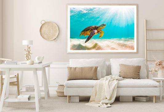 Turtle Swimming in The Ocean with Sun Shining Home Decor Premium Quality Poster Print Choose Your Sizes