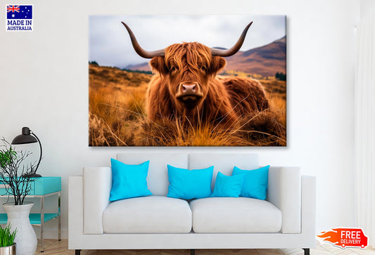 Highland Cow with Horns Wall Art Decor 100% Australian Made