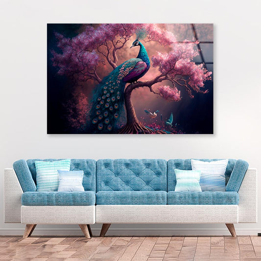 Peacock Sitting on Top of a Tree Acrylic Glass Print Tempered Glass Wall Art 100% Made in Australia Ready to Hang