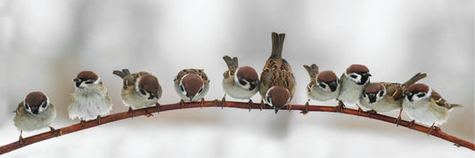 Panoramic Canvas Birds Sitting on a Branch High Quality 100% Australian made wall Canvas Print ready to hang