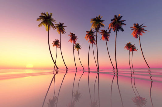 Wallpaper Murals Peel and Stick Removable Pool & Beach with Palm Trees in Sunset Photograph High Quality