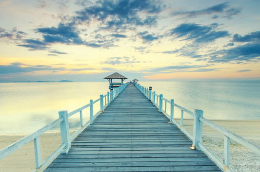 Stunning Beach with Resort On Wooden Pier Print 100% Australian Made
