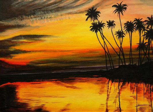 Beach with Palm Trees Sunset Watercolour Painting Print 100% Australian Made