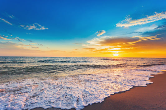 Beach Sunrise with Bright Blue Skies & Colorful Clouds Photograph Print 100% Australian Made