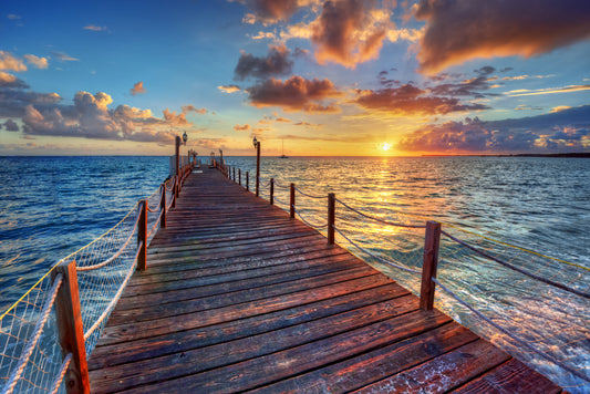 Stunning Beach & Wooden Pier Sunset Photograph Print 100% Australian Made