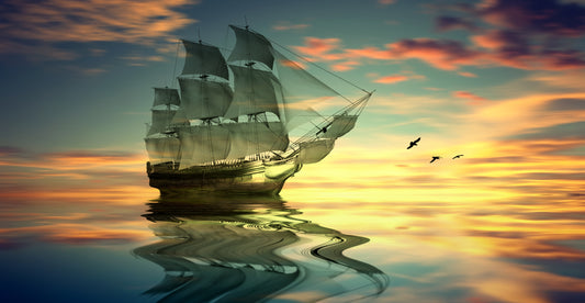 Reflection of a Ship & Birds on Beach Photograph Print 100% Australian Made