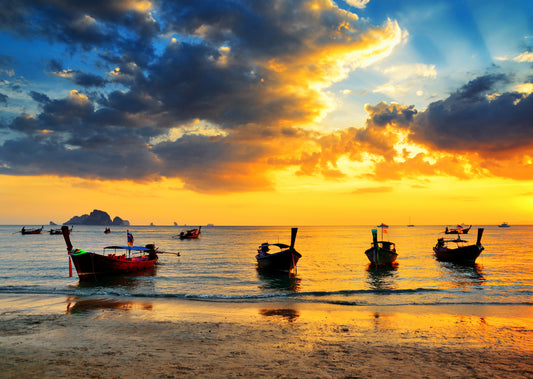 Beach with Boats Scenery Sunset Photograph Print 100% Australian Made