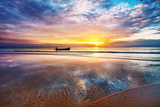 Boat on Stunning Beach Sunset Photograph Print 100% Australian Made