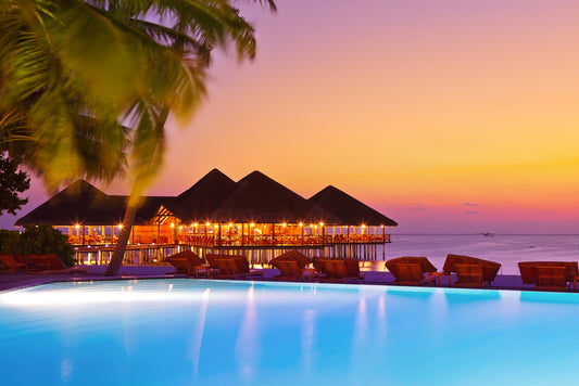 Beach & Pool View with Huts Photograph Print 100% Australian Made
