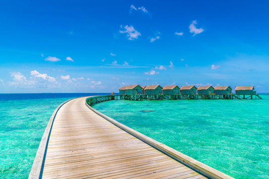 Beach & Huts with Wooden Pier Print 100% Australian Made