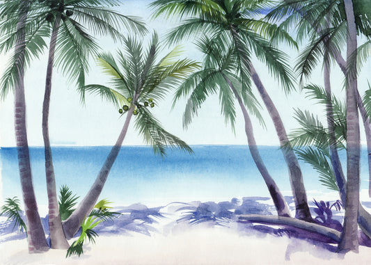 Beach & Trees View Watercolour Painting Print 100% Australian Made