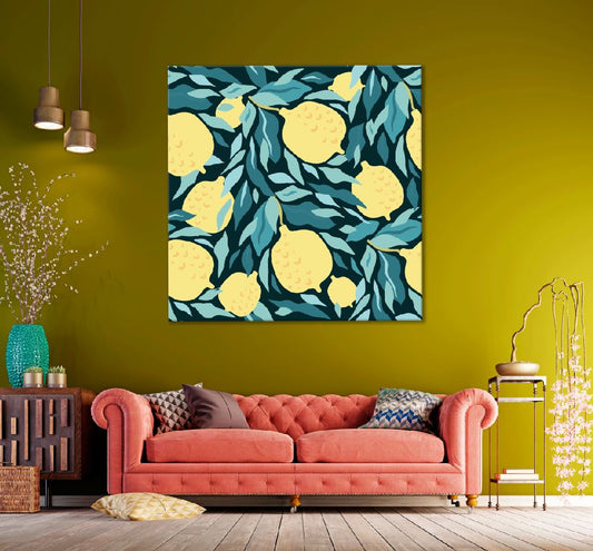 Square Canvas Lemon & Leaves Vector Art Design High Quality Print 100% Australian Made