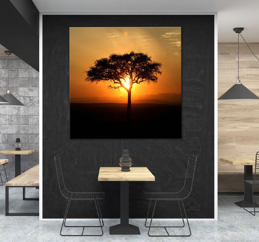 Square Canvas Alone Tree on Sunset View Photograph High Quality Print 100% Australian Made