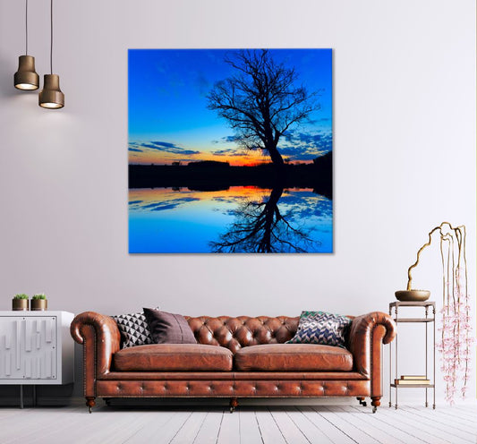 Square Canvas Old Tree in Water with Sunset Photograph High Quality Print 100% Australian Made