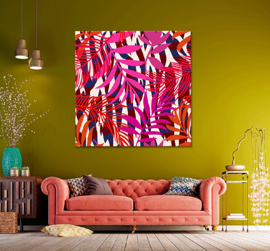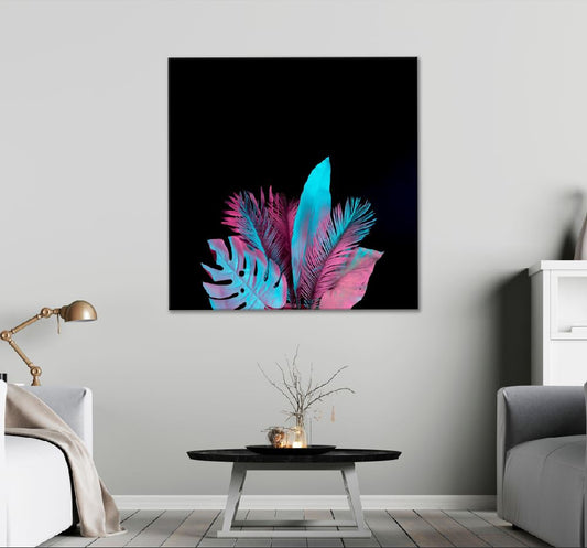 Square Canvas Tropical & Palm Leaves Neon Colors View High Quality Print 100% Australian Made