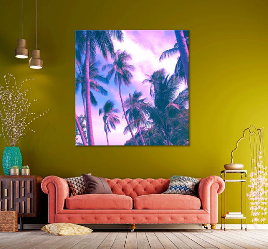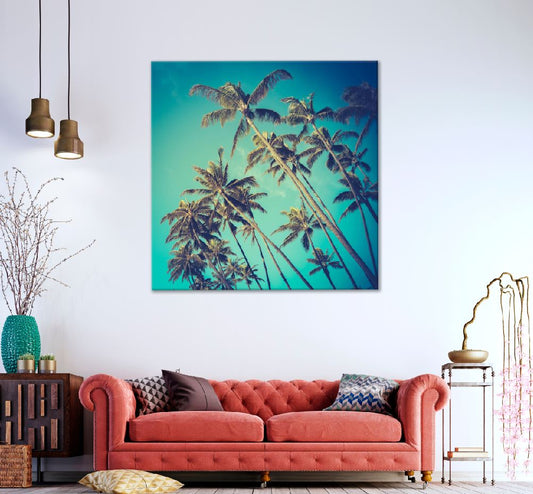 Square Canvas Palm Trees in Vintage Filter Photograph High Quality Print 100% Australian Made