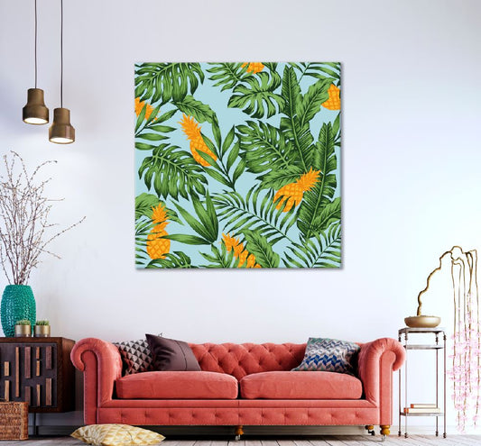 Square Canvas Pineapple & Leaves Vector Art High Quality Print 100% Australian Made
