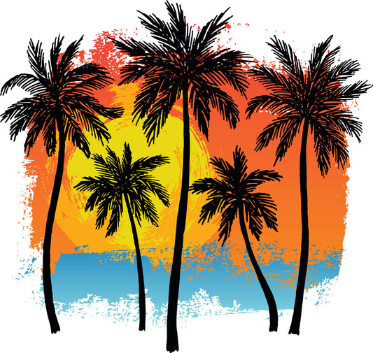 Square Canvas Palm Trees Sunset Vector Art High Quality Print 100% Australian Made