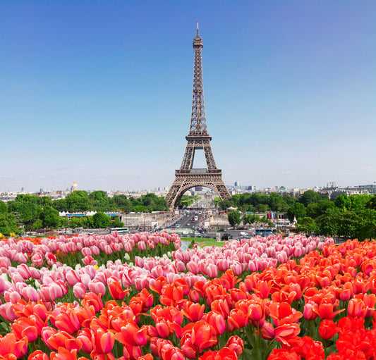 Square Canvas Eiffel Tower & Tulip Flowers High Quality Print 100% Australian Made