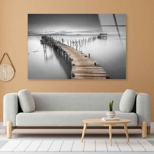B&W Peaceful Ancient Pier Acrylic Glass Print Tempered Glass Wall Art 100% Made in Australia Ready to Hang