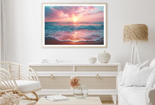 Beautiful Sunset over a Pink Sandy Beach View Home Decor Premium Quality Poster Print Choose Your Sizes