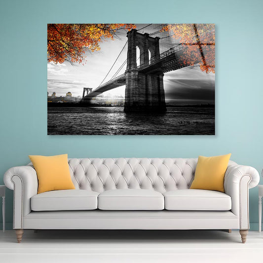 B&W Brooklyn Bridge Acrylic Glass Print Tempered Glass Wall Art 100% Made in Australia Ready to Hang