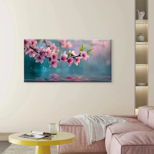 Falling Cherry Blossoms Lake Wall Art Canvas Office Home Room Framed 120x60cm