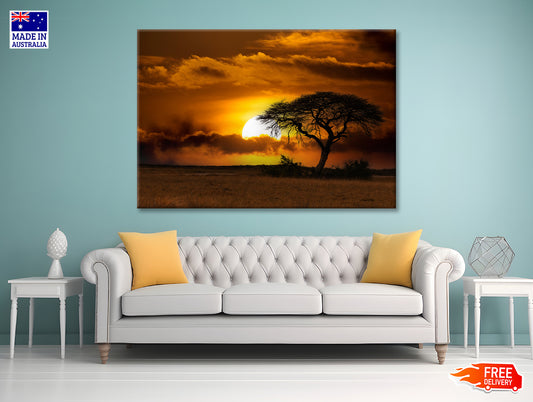 Sunset in Africa Over Acacia Tree Print 100% Australian Made