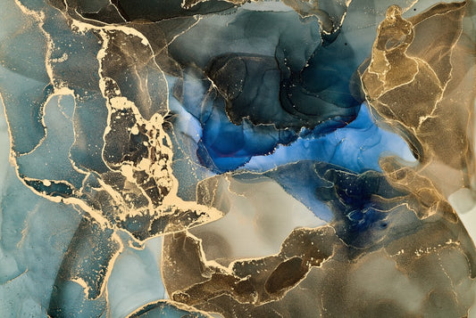 Grey Blue & Gold Abstract Design Print 100% Australian Made