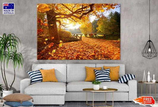 Autumn Garden with Wooden Bridge Photograph Print 100% Australian Made