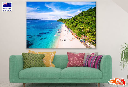 Aerial view of Puka Beach in Boracay Island,Philippines Print 100% Australian Made