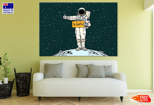 Astronaut Hitch Rides On Earth Illustration Print 100% Australian Made