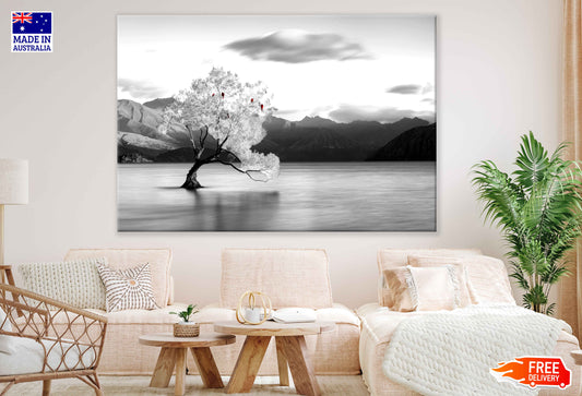 Black And White Lake Night Moon Sky Wall Art Decor 100% Australian Made