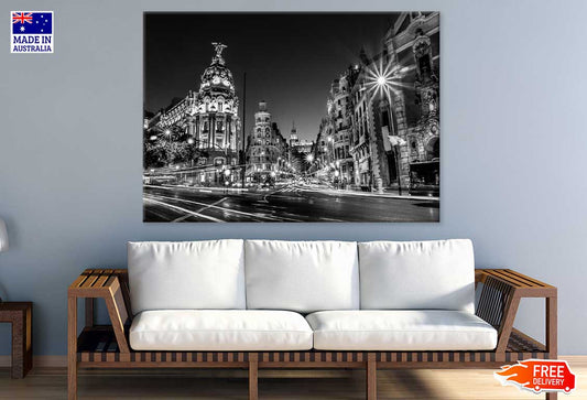 Madrid City Night B&W View Photograph Print 100% Australian Made