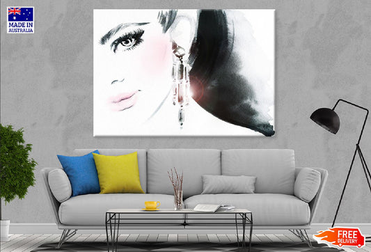 Girl Face & Jewelry B&W Watercolor Painting Print 100% Australian Made