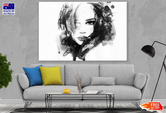 Fashion Woman Face B&W Watercolor Painting Print 100% Australian Made