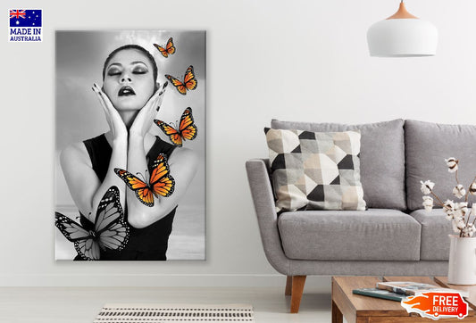 Fashion Woman with Butterflies B&W Digital Art Print 100% Australian Made