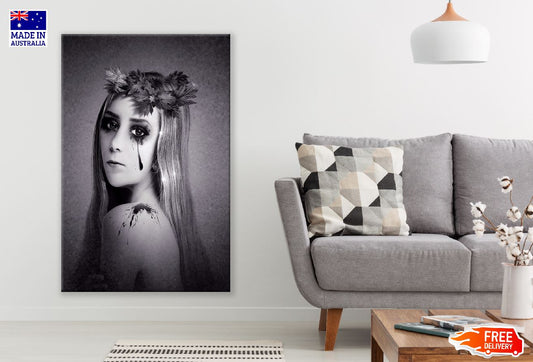 Makeup Girl with Headdress B&W Photograph Print 100% Australian Made